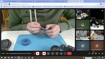 Учасники відповідали на запитання теоретичного заліку в Google формі та складали на швидкість електронний пристрій за запропонованою журі принциповою електричною схемою на макетній платі для паяння окремо в молодшій і старшій віковій групі.